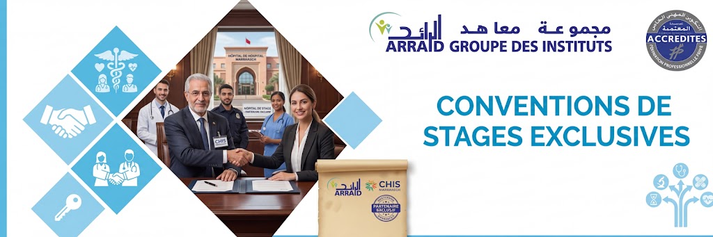 les stages dans les milieux professionnels permettent à nos stagiaires d’exercer les sciences paramédicales constituant les fondements du Système National de Santé du Maroc, qui ont acquis pendant la formation théorique et pratique au sein de notre centre.